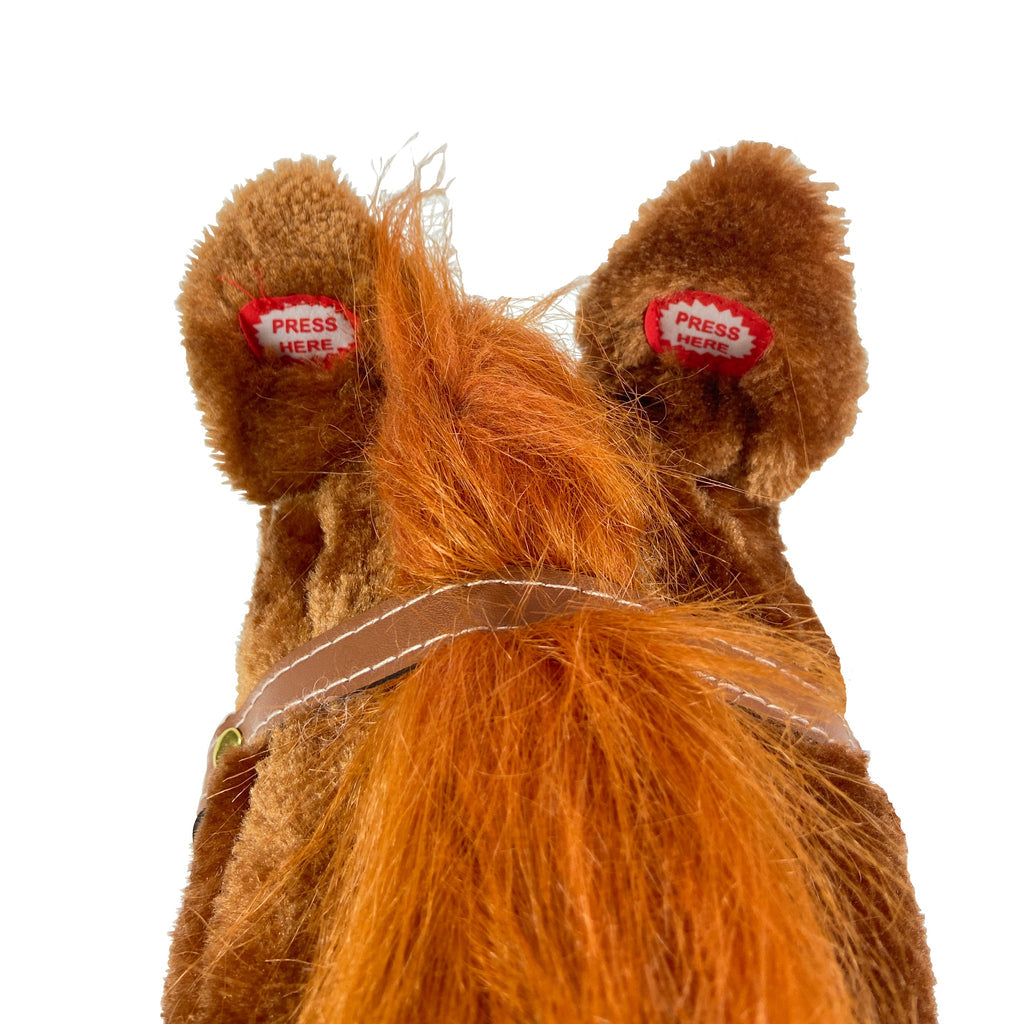 Each ear has a button your kiddo can push for lifelike sound effects like horse neighing and galloping!