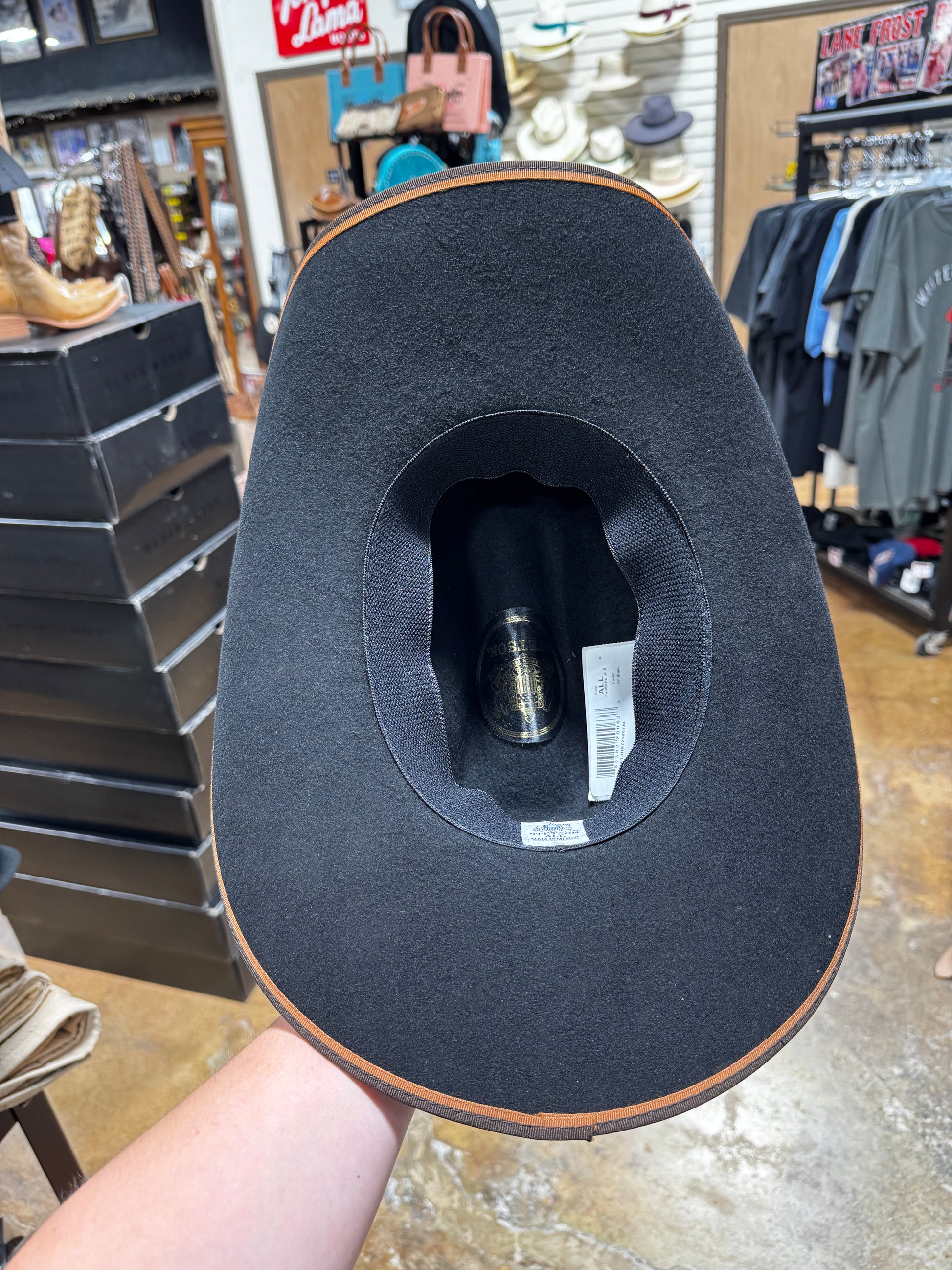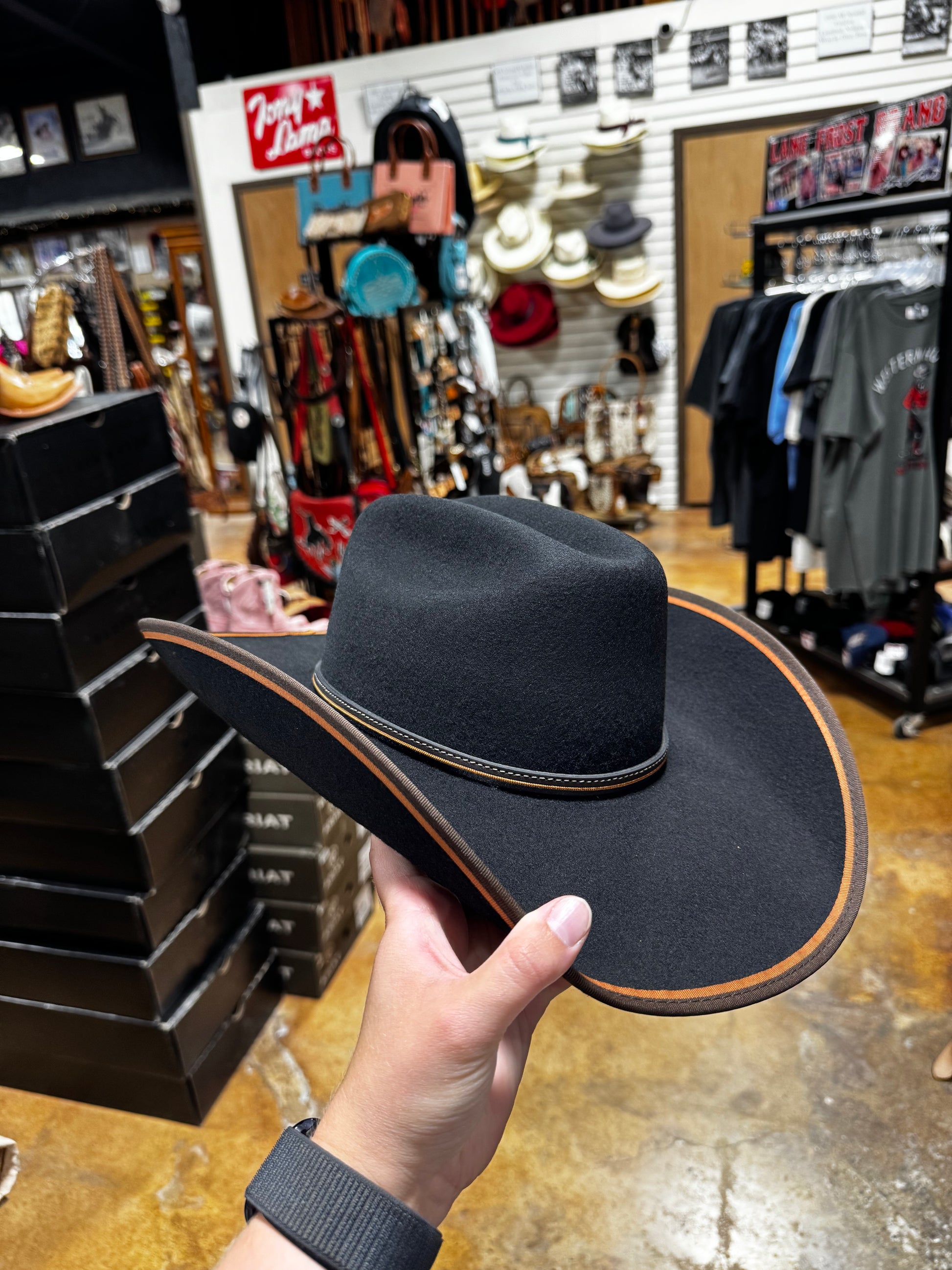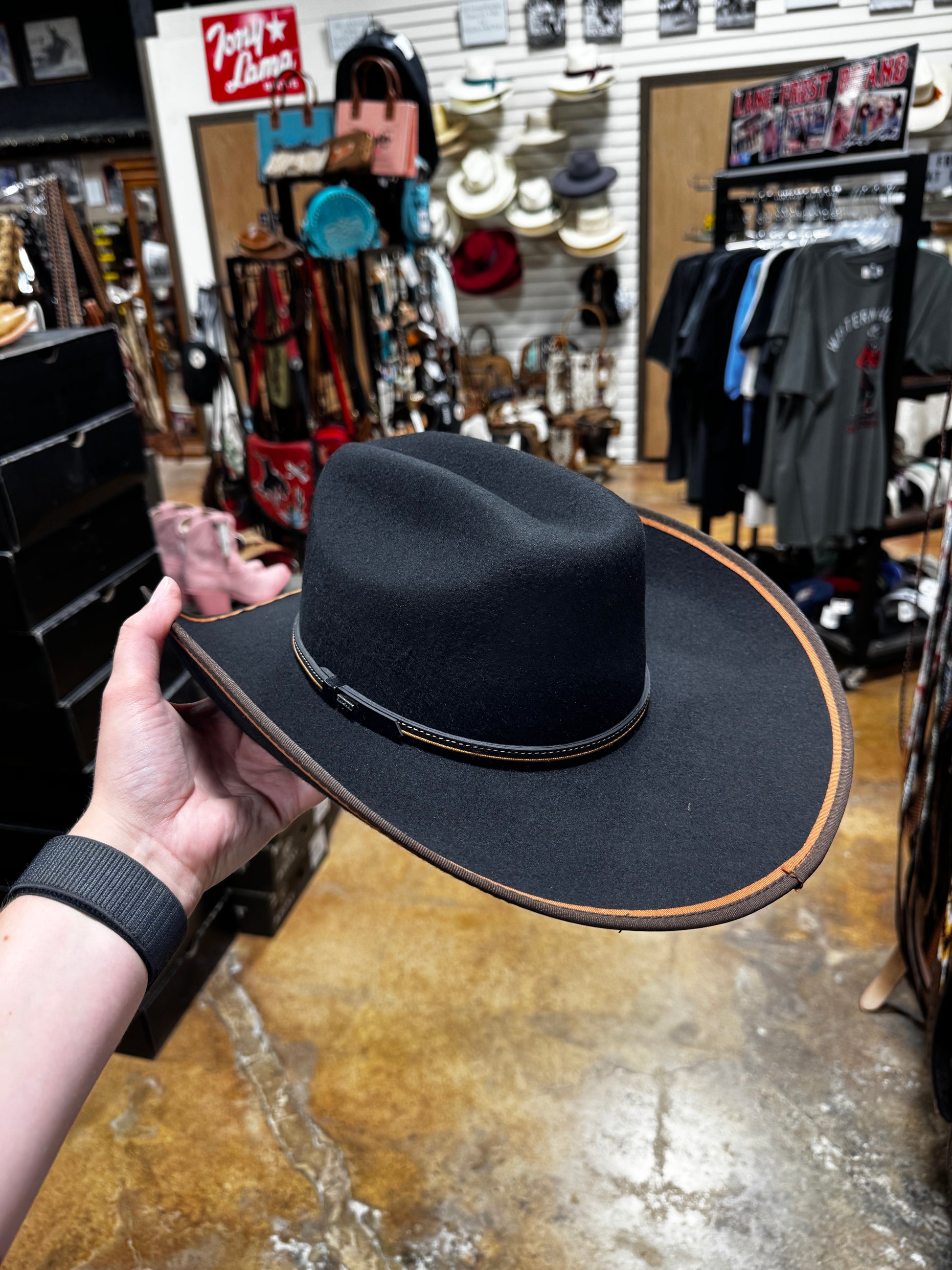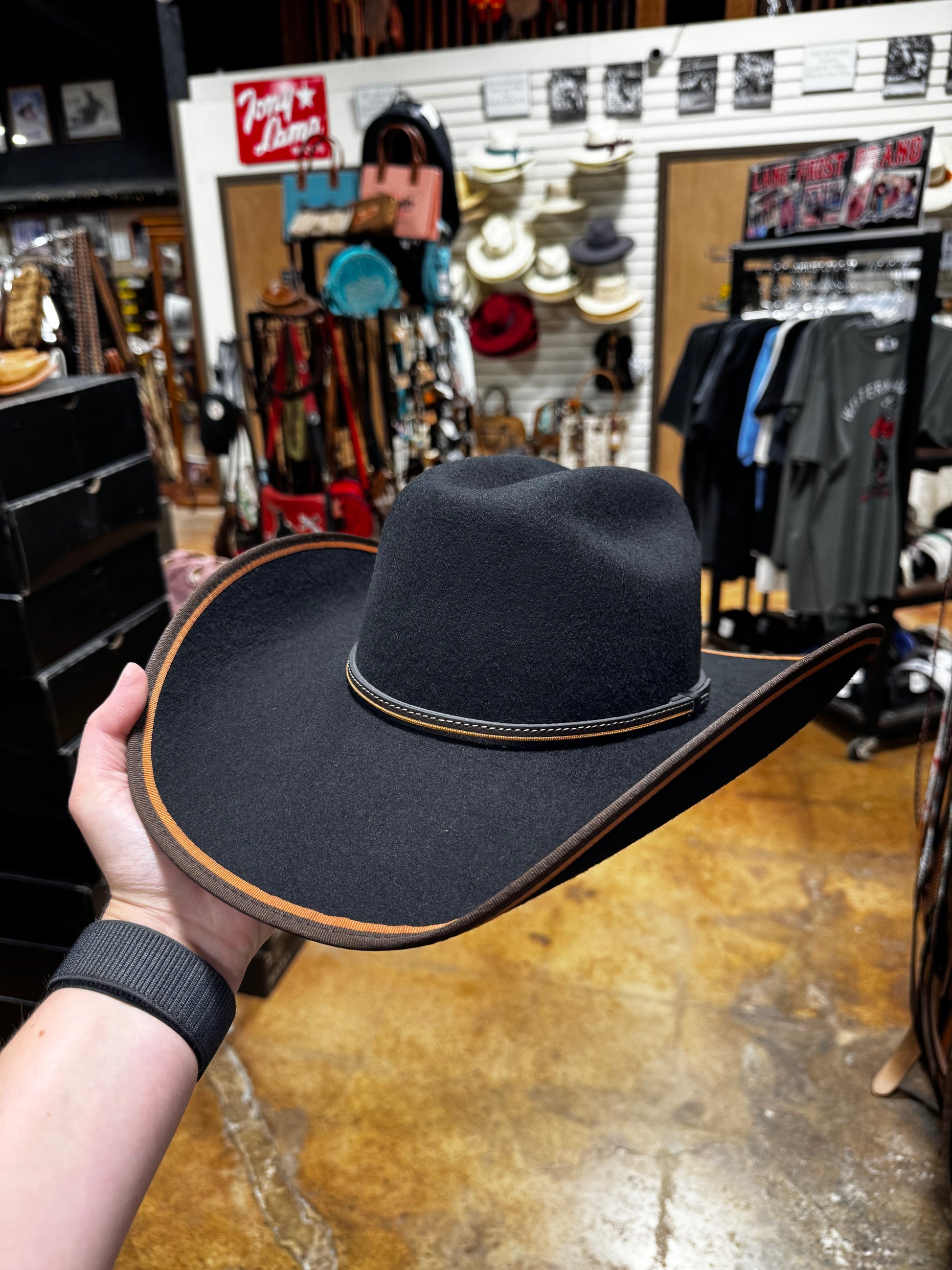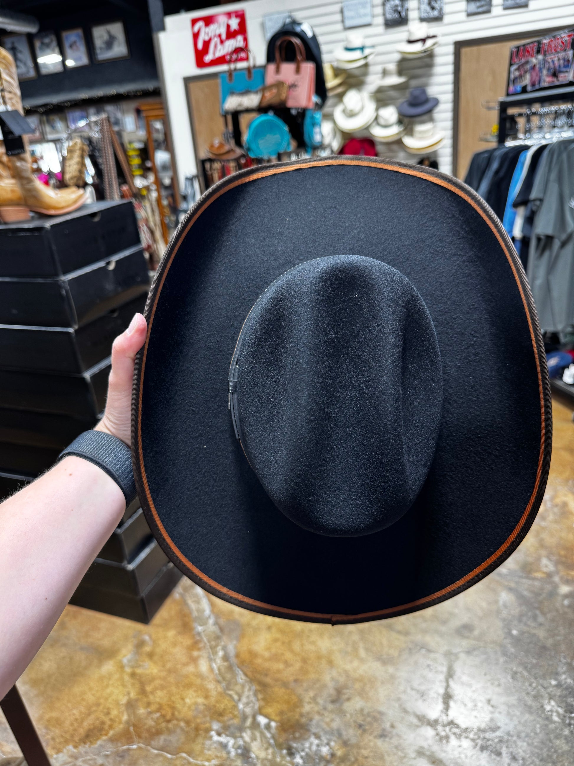 Youth felt hat with a brown and tan bound edge with a one size fits most band