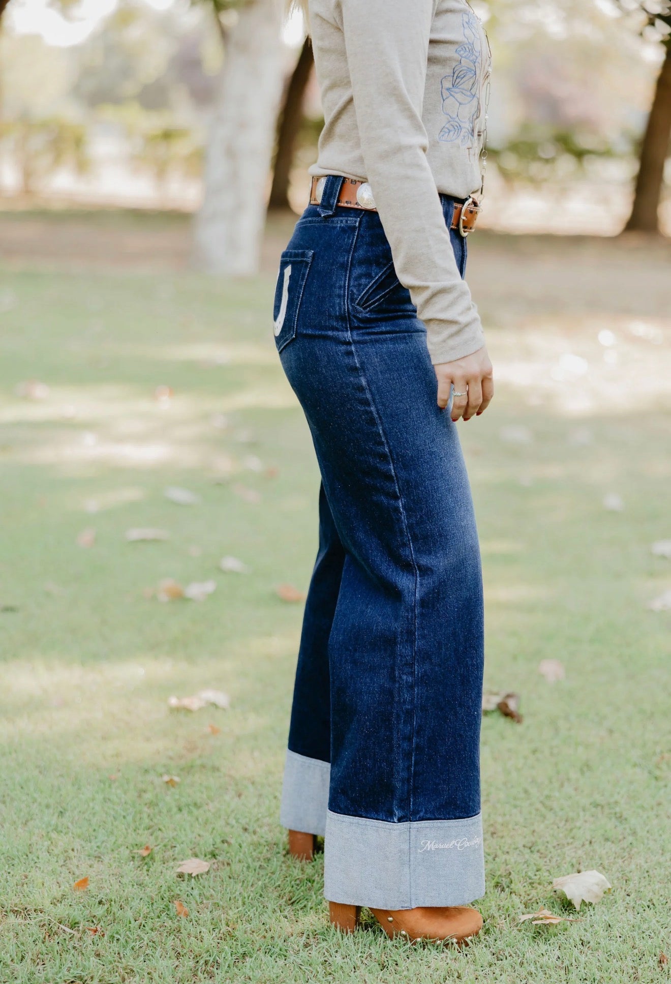 Featuring a flattering wide-leg cut and subtle rodeo-inspired details, these jeans offer both comfort and timeless cowboy flair. Perfect for pairing with boots or a favorite Western top, they bring effortless style to any outfit.