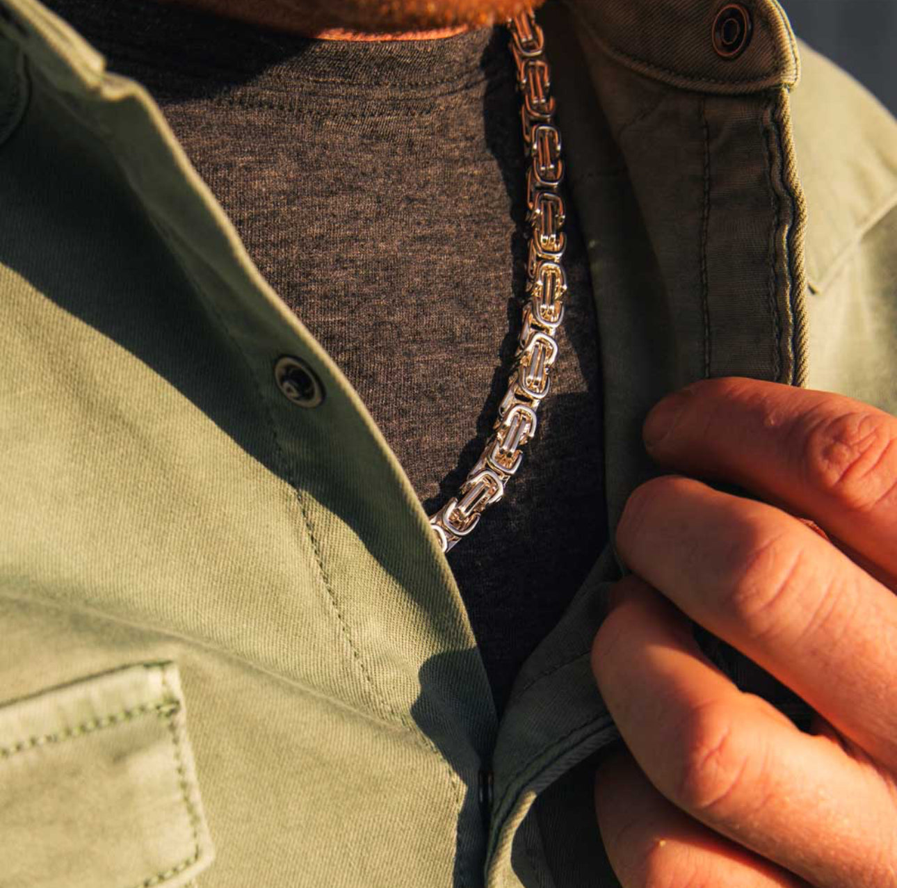 Make a statement with the Roller Chain Necklace. This necklace will elevate any outfit. The stainless steel chain has a bold design and a 23 inch chain length.