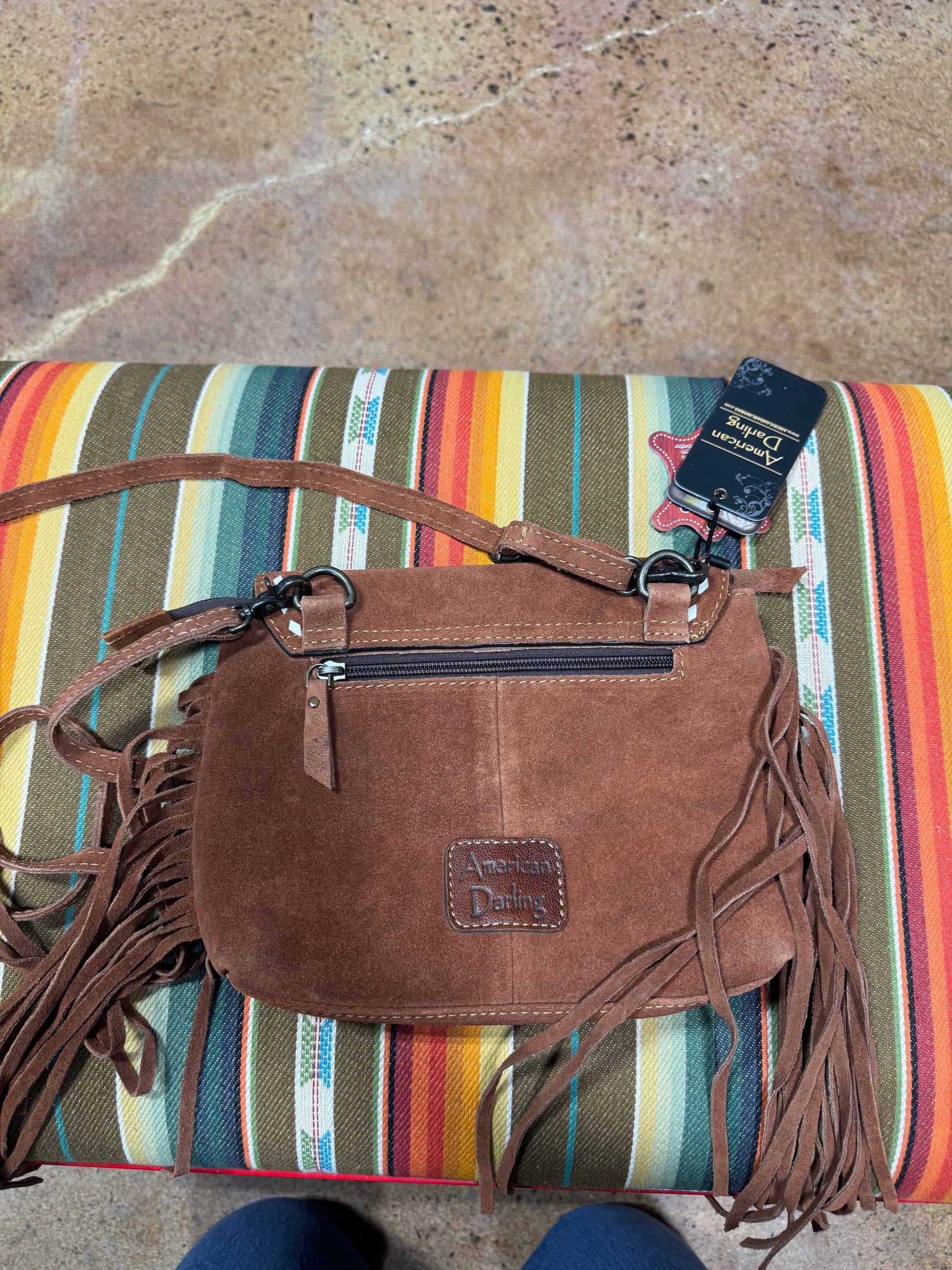 Small Roughout Crossbody purse with Boot Stitch and Fringe