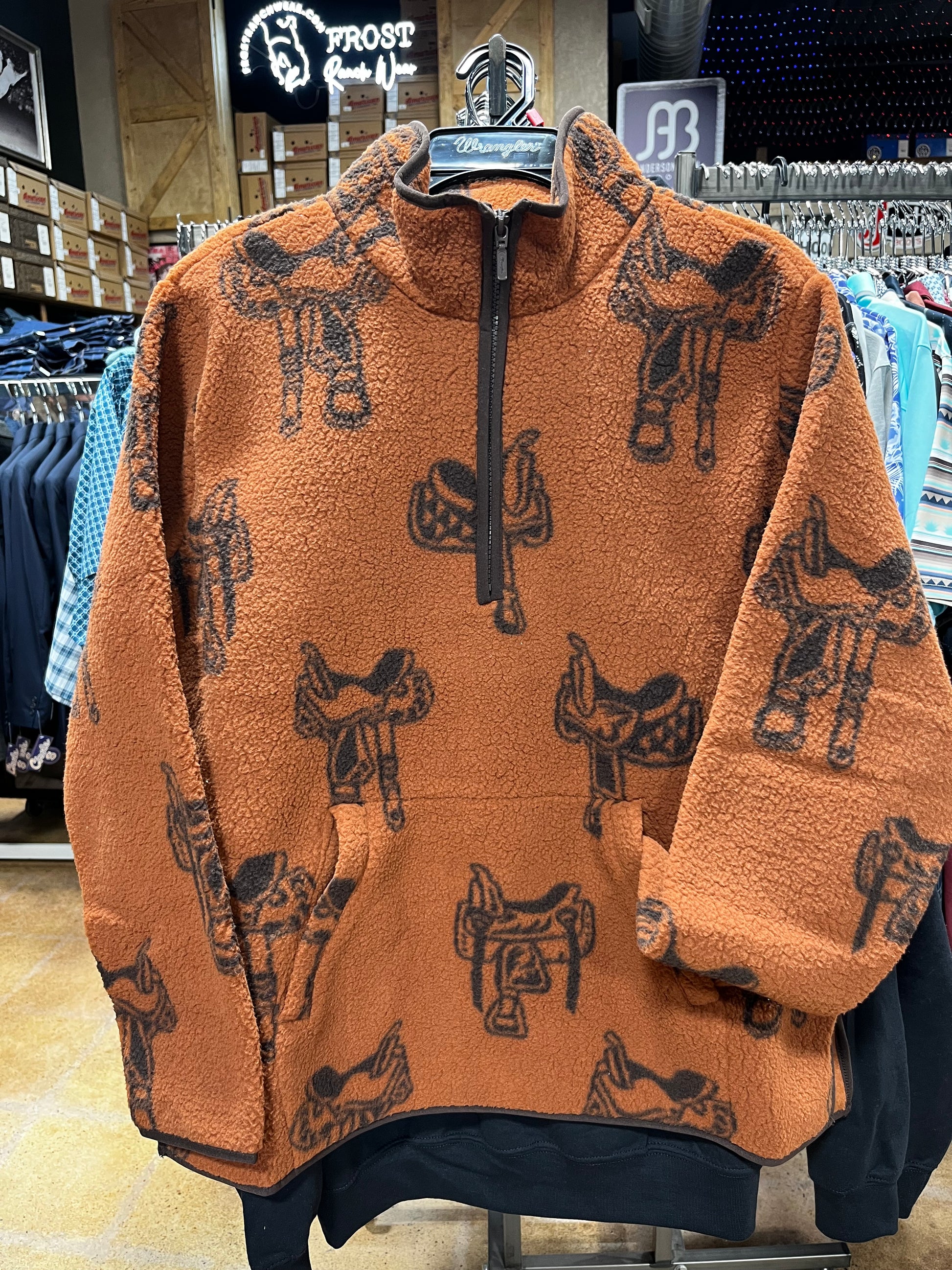 Brown Sherpa with black saddles